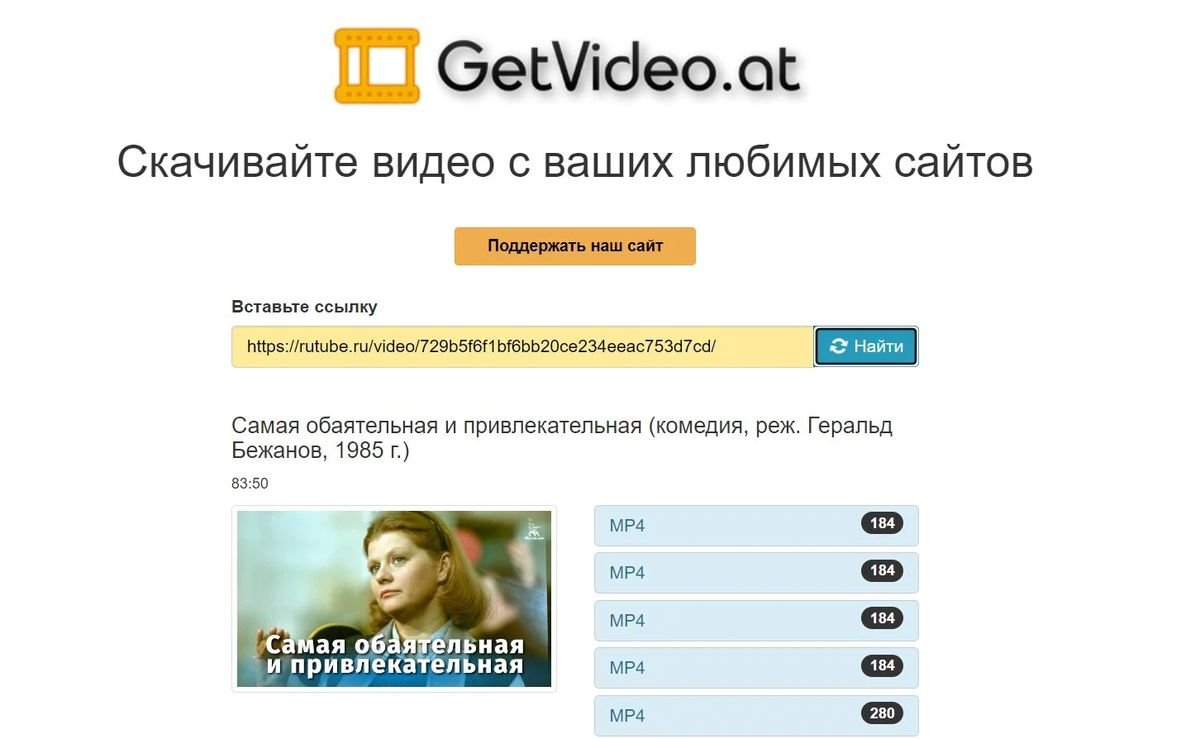 Используйте сервис GetVideo.at, чтобы за несколько кликов скачать интересующий вас ролик с RuTube.