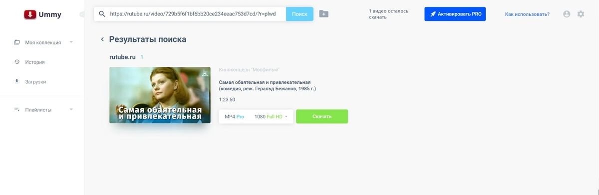 - Программа выведет на экран видео и ссылки для скачивания. Нажмите «Скачать»;