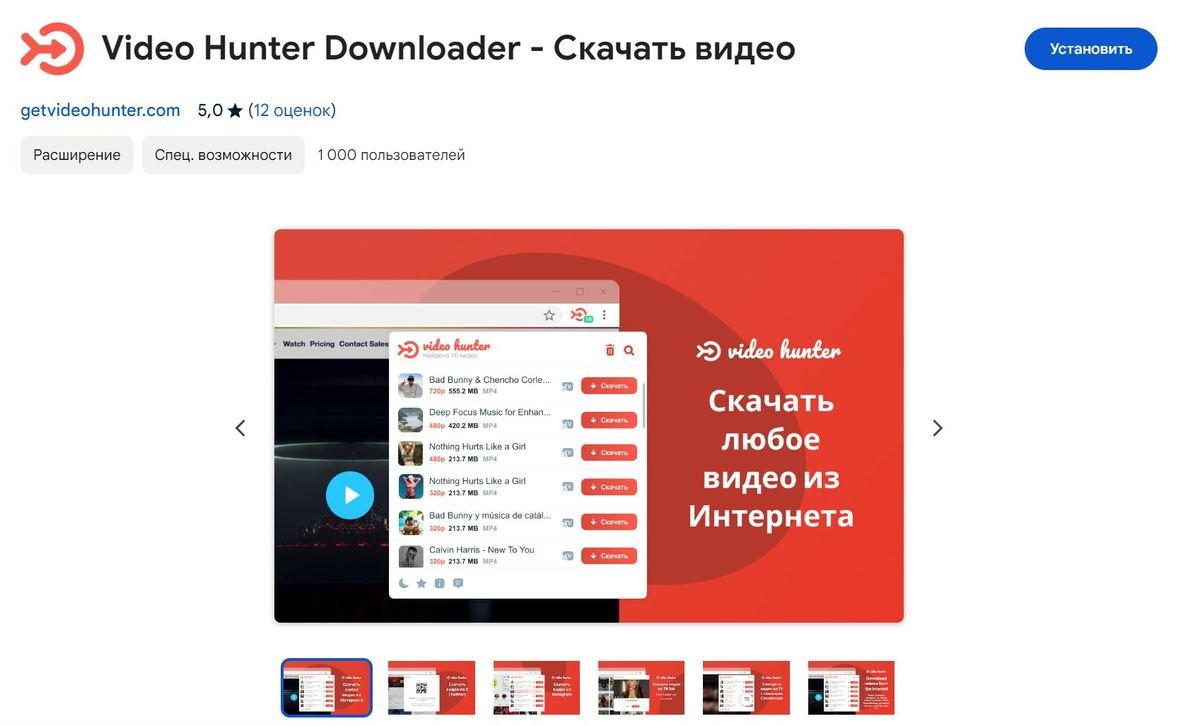 Чтобы скачать видео с помощью расширения, нужно установить соответствующий плагин из магазина вашего браузера. Подавляющее большинство работает на движке Chromium. Для них существует хорошее расширение для скачивания видео под названием Video Hunter Downloader.