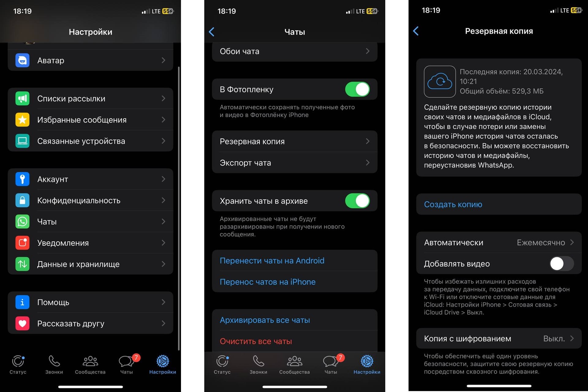 Для начала необходимо создать резервную копию аккаунта WhatsApp. Для этого необходимо: