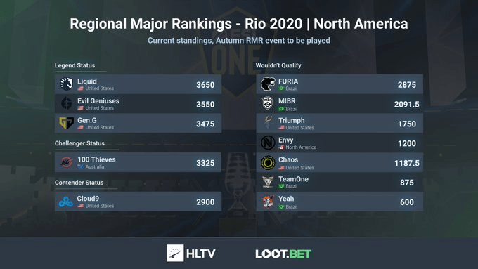 Подошла к концу вторая квалификация Regional Major Rankings (RMR) к ESL One Rio 2020. По итогу FURIA и MIBR оказались за пределами топ-5 рейтинга команд Северо-Американского региона и рискуют не попасть на следующий Major.