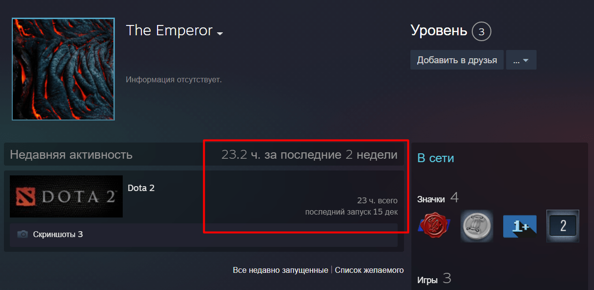 Примечательно, что коллекционер не является заядлым игроком в Dota 2, так как на момент публикации он провёл в Доте 23 с небольшим часа. А его аккаунт был создан 6 декабря 2018 года.