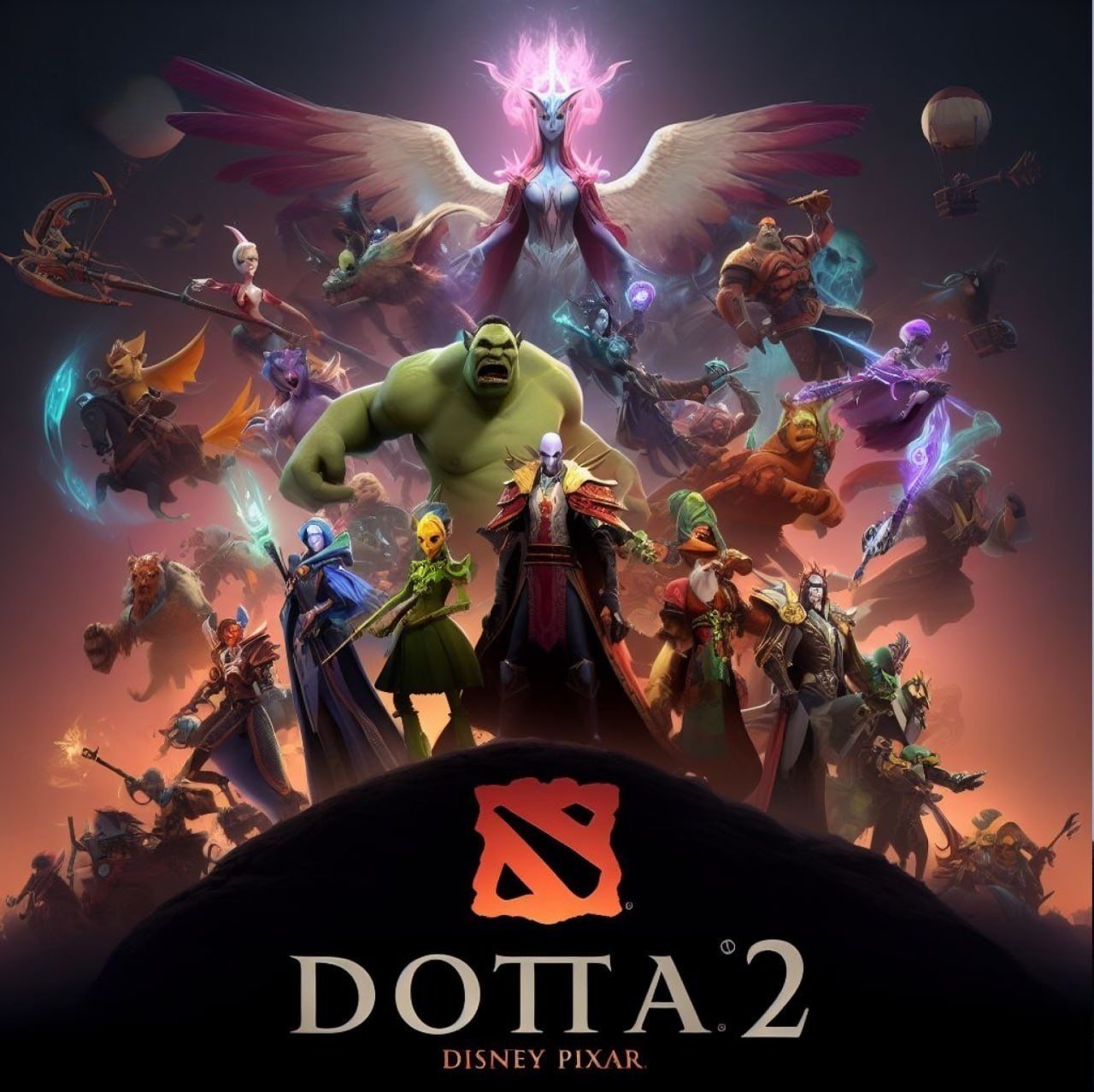 Разумеется, подобный тренд не мог обойти стороной такую популярную MOBA, как Dota 2. Хотя на созданных нейросетью рисунках сложно найти хотя бы одного героя из игры Valve, общий стиль персонажей и знаменитый логотип «Доты» узнаются сразу.