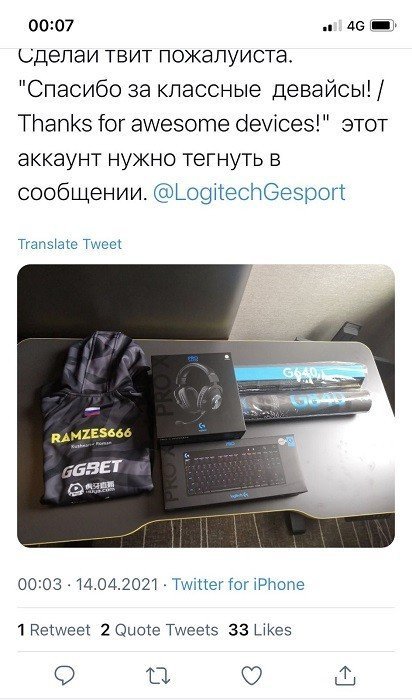 В ночь на 14 апреля новый офлейнер состава Natus Vincere по Dota 2 Роман RAMZES666 Кушнарев выложил в своем твиттере рекламную интеграцию с Logitech, в которой использовал весь текст из технического задания.