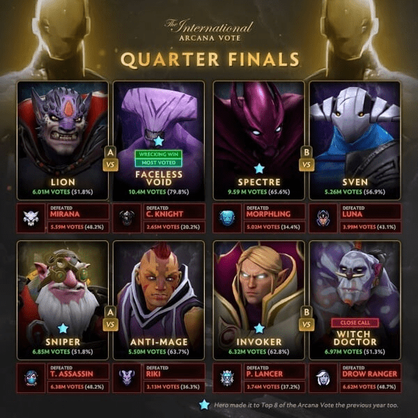 Стали известны все участники четвертьфинала голосования за аркану в боевом пропускеDota 2.