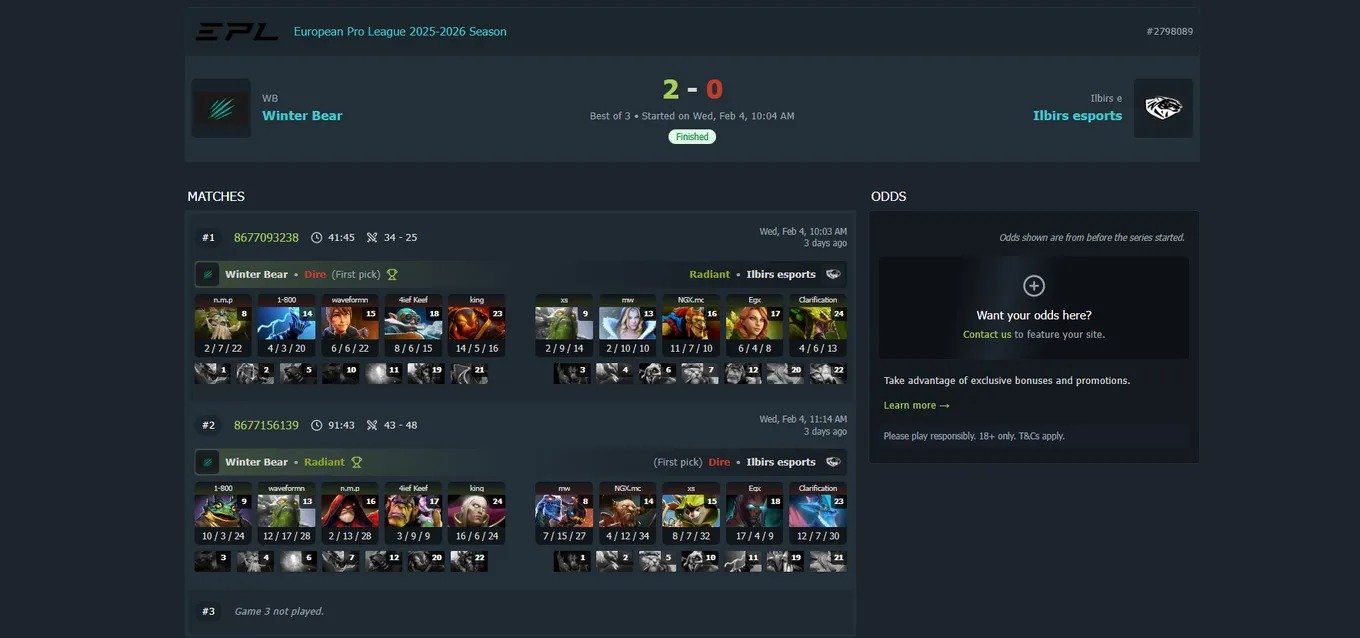 Вернувшись через некоторое время, Иван 30 минут стоял на фонтане, не давая напарниками возможности управлять его героем. Однако даже это не помешало команде выиграть — матч Winter Bear против Ilbirs eSports закончился со счетом 2:0.