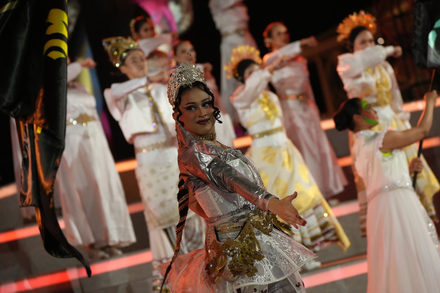 Церемонию открыли мощным и красочным выступлением под названием Rise in Indonesia — его исполнила профессиональная танцевальная команда Swargaloka. Номер открыли музыканты под звуки ударного инструмента, затем в ход вступила флейта, а происходящее стало напоминать древний ритуал. В конце традиционные инструменты слились с современными, и магия потоками начала литься в зал.