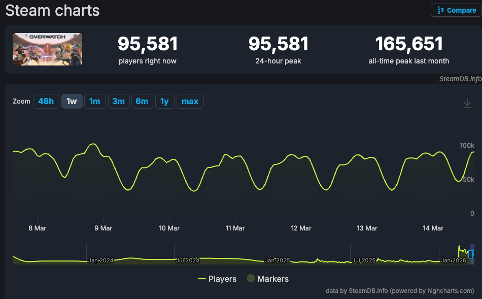 На этом Blizzard останавливаться не планирует — до конца года Overwatch пополнится еще пятью свежими лицами. Судя по статистике в Steam, у конкурирующих шутеров онлайны за последние сутки практически равнозначны.