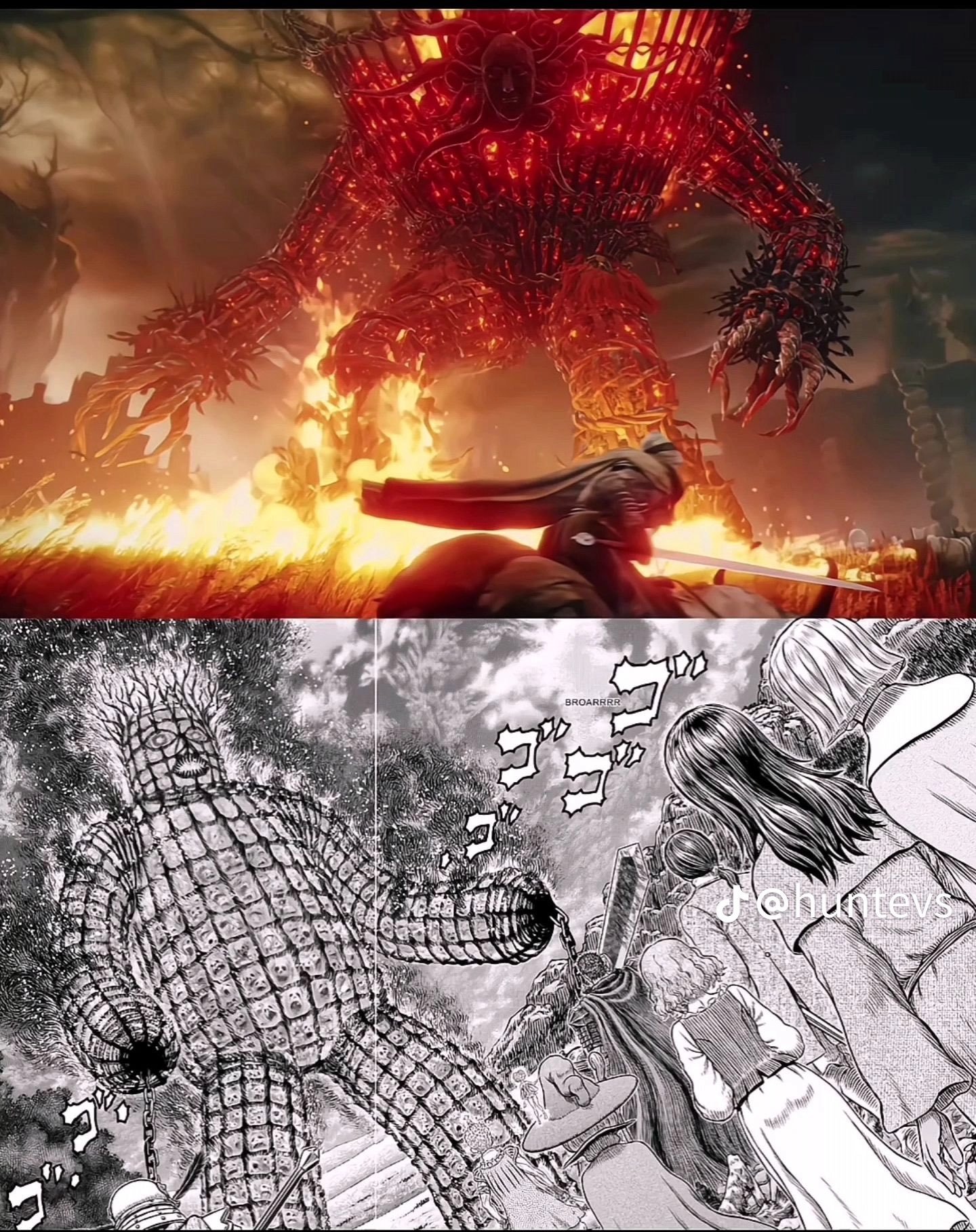 Несколько дней назад студия FromSortware выпустила трейлер Shadow of the Erdtree — дополнения для Elden Ring. Внимательные зрители тут же заметили в ролике несколько отсылок к легендарной манге «Берсерк».