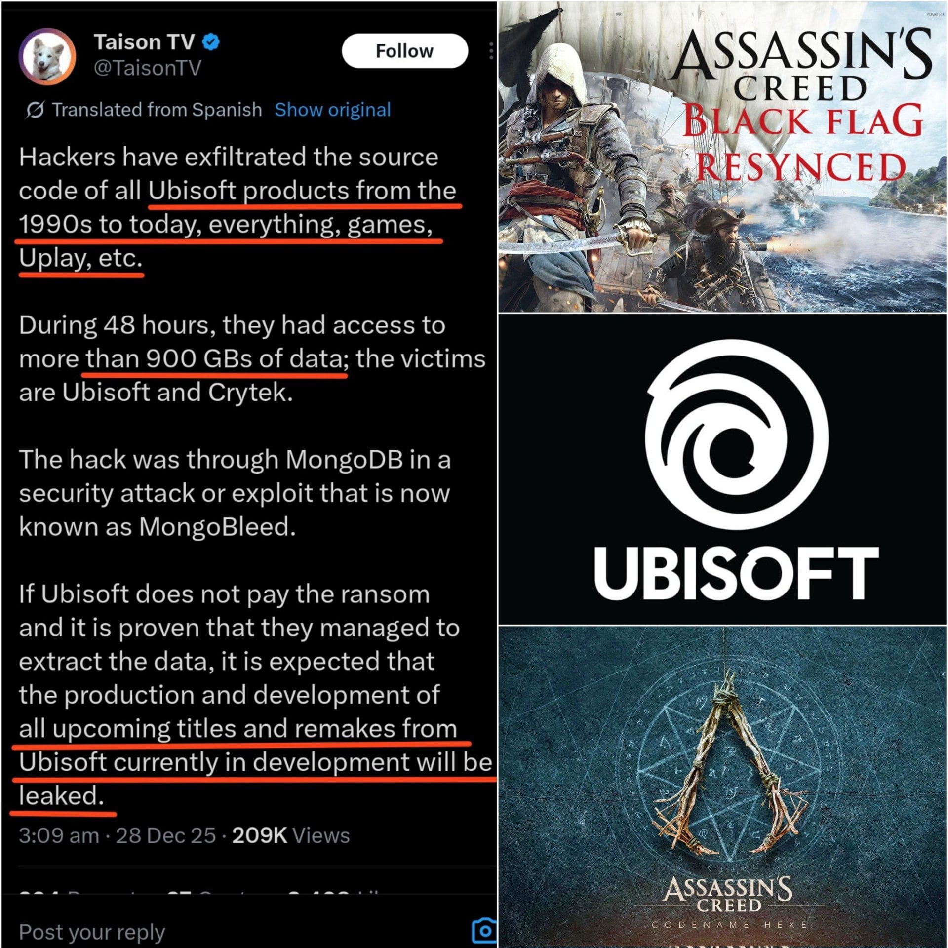 По неподтвержденной информации, злоумышленники могли получить доступ к более чем 900 ГБ внутренних данных компании — речь идет об исходных кодах игр (начиная с 1990-х), сервисов Ubisoft Connect, а также материалах по будущим проектам и ремейкам.