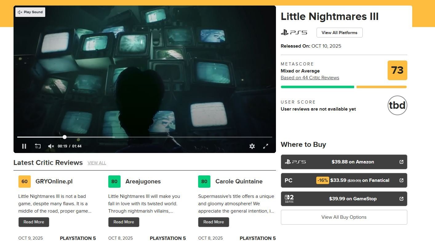 Уже этой ночью — с 9 на 10 октября — состоится релиз долгожданной Little Nightmares 3. Игра обещала быть насыщенной и довольно активной, несмотря на жуткую и мрачную атмосферу. Но как гром среди ясного неба появились первые оценки критиков, которые заставляют надежды на отличную игру пошатнуться.