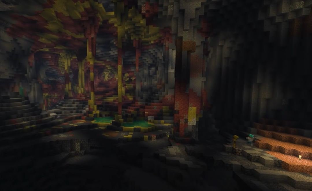 Новой рудой станет сера, которую можно будет найти в соответствующих генерациях — серных пещерах. Игрока встретят яркие красные и желтые блоки, из которых, соответственно, можно будет много чего скрафтить.