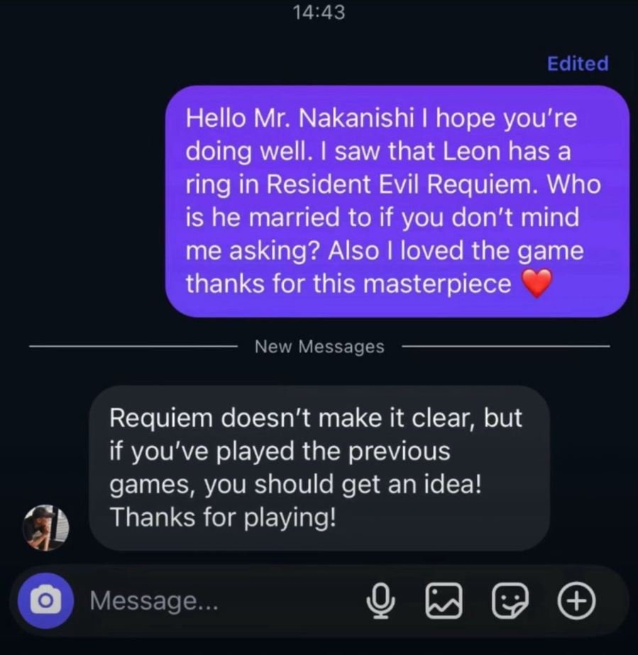 Один из разработчиков игры — Коши Наканиши — решил не оставлять поклонников наедине со своими догадками, потому решил всё же ответить на интересующие многих вопросы насчет женитьбы Леона. Правда, мужчина не дал прямого ответа, но даже намеков достаточно, чтобы понять, кто стал избранницей главного героя.
