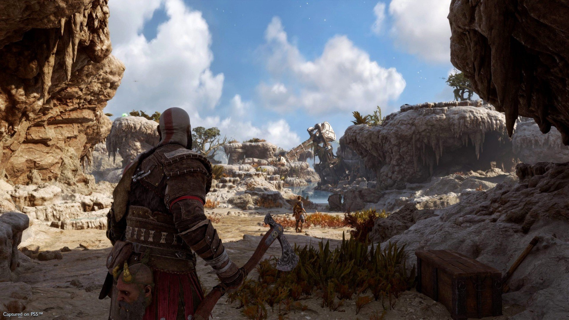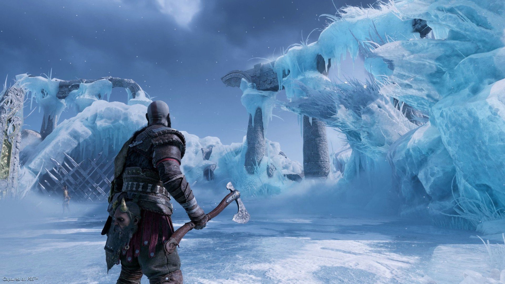 На странице God of War: Ragnarok в интернет-магазине PS Store появились новые скриншоты, сделанные непосредственно внутри игры. К сожалению, на них разработчики не показали лицо главного героя, он предстает только со спины.