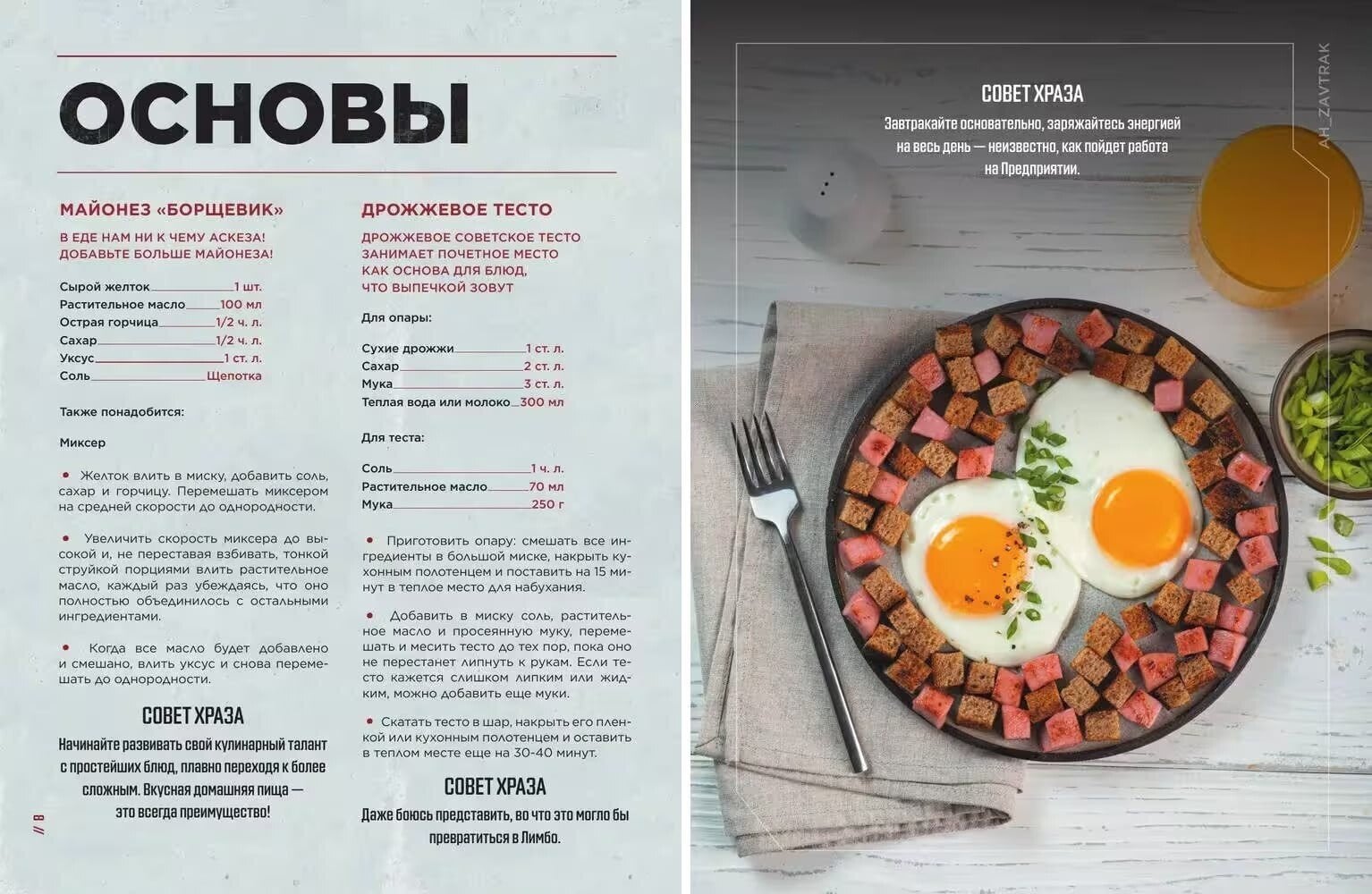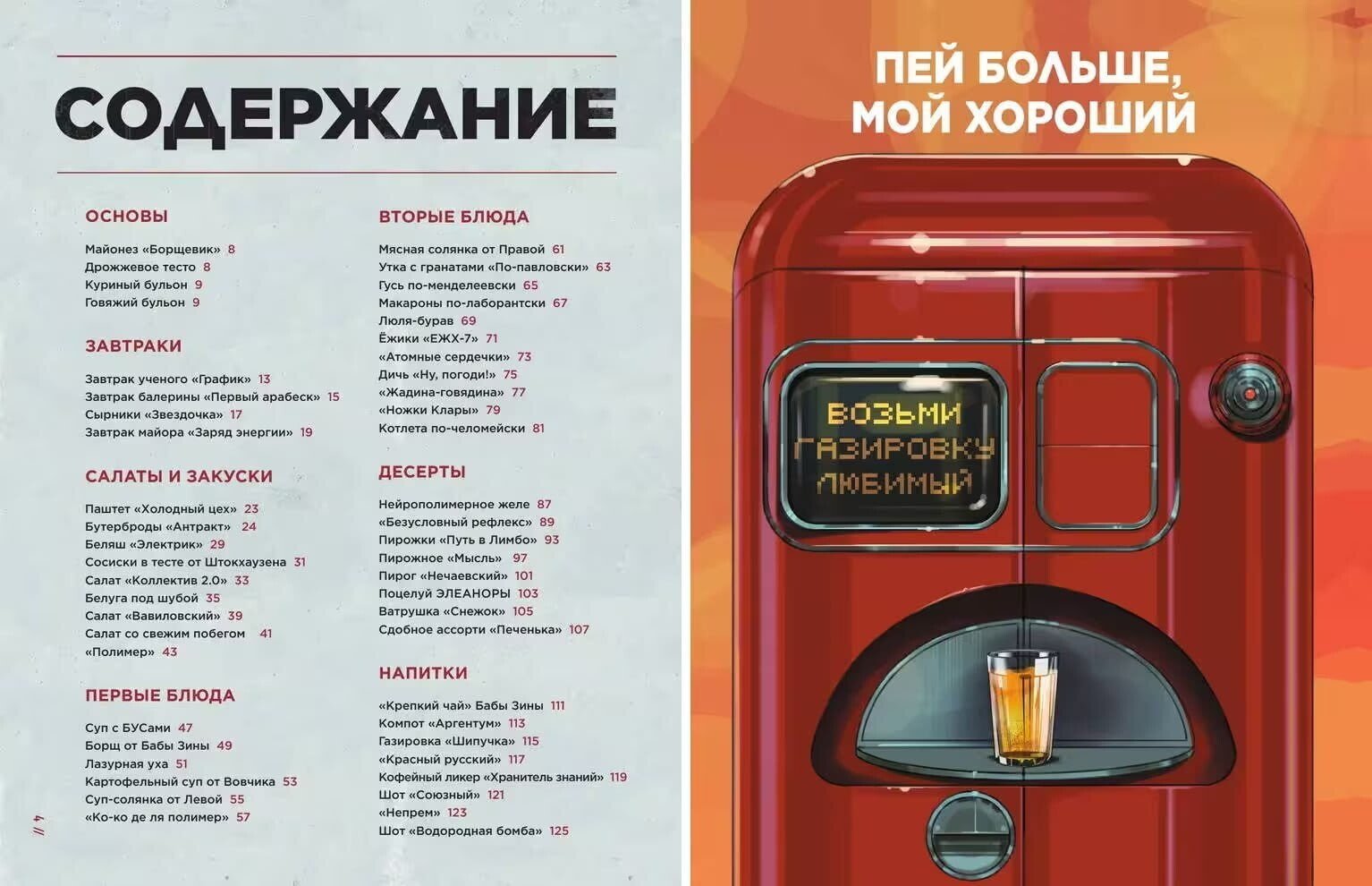 Все рецепты сопровождаются советами ХРАЗа — мудрыми, но не всегда полезными. А еще внутри много юмора в духе советских плакатов. Вас также ждет множество концепт-артов: новые образы знакомых героев созданы специально для книги, а от пейзажей с монументальной архитектурой захватывает дух.