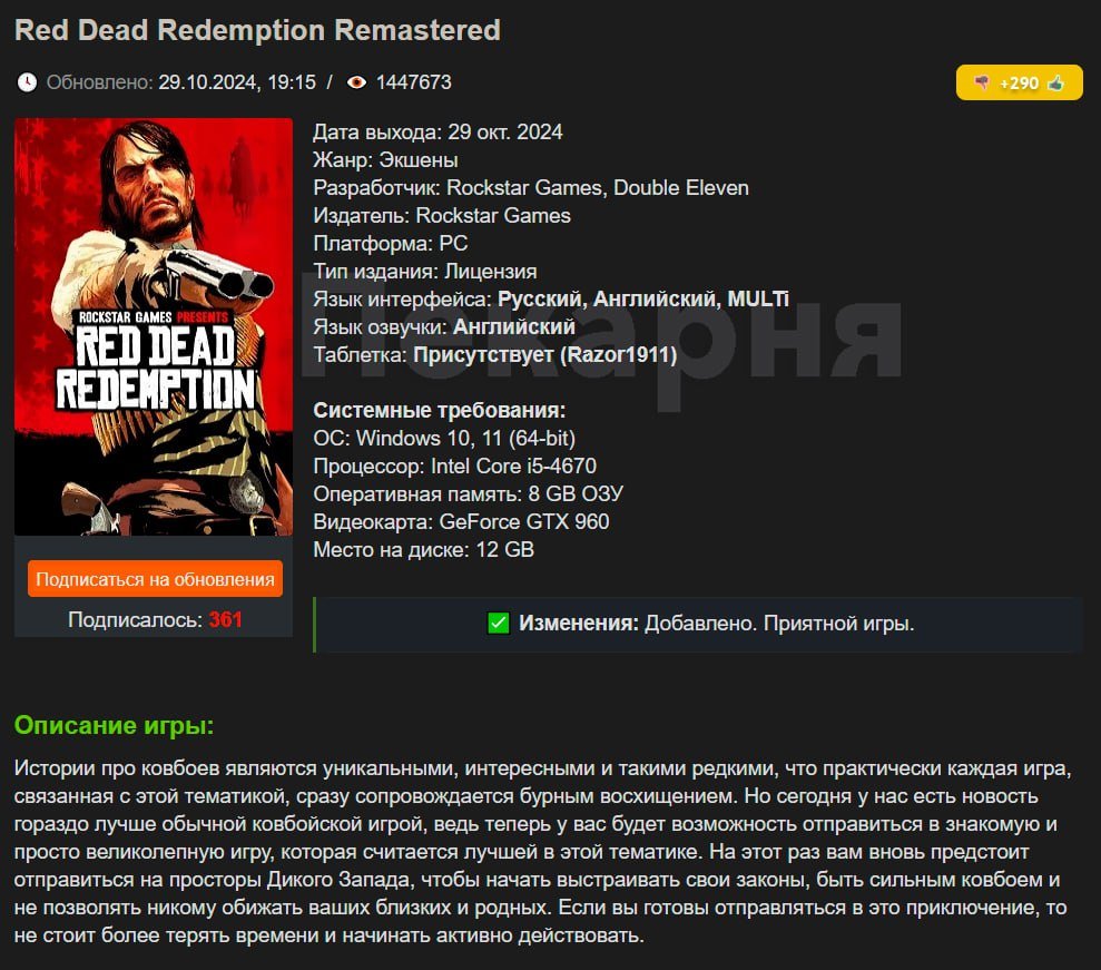Многие действительно нуждались в бесплатной версии экшена, так как лицензионная Red Dead Redemption недоступна в РФ, и ее цена сильно завышена даже по зарубежным меркам.
