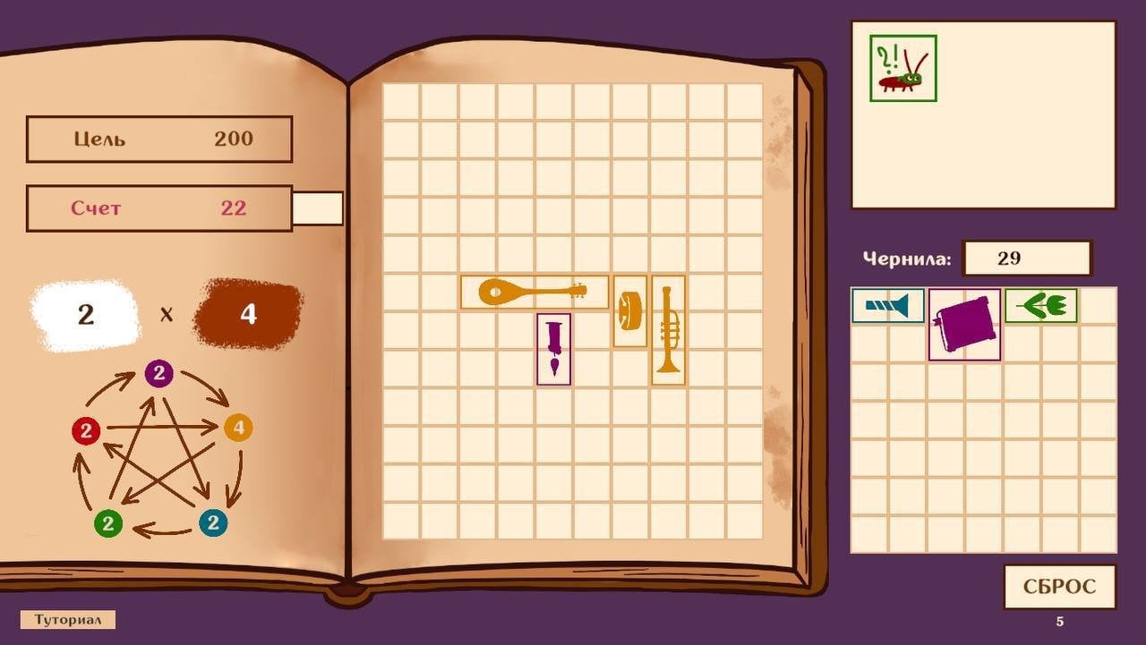 Нужно было добавить какую-то графику, и самым простым решением оказался тараканчик: овал, четыре лапки и усики — ничего сложного. Особенно удачно он ложился на фигуру из трех клеток в форме буквы «Г». Так тараканчик постепенно стал нашим маскотом, от которого мы уже не смогли отказаться.