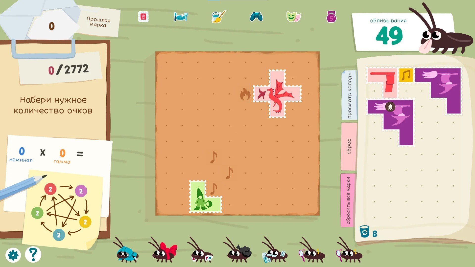 Со временем ведьмы, книги и заклинания начали конфликтовать с механиками игры, так что студия решила изменить сеттинг. Так и появилась идея с марками. А тараканчика решили оставить.