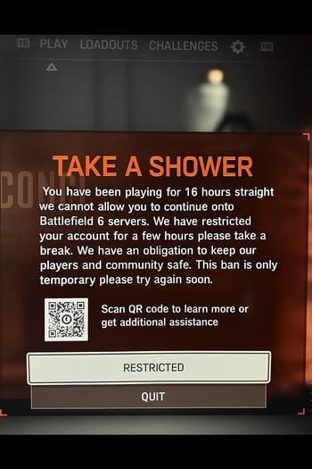 Давно ли вы трогали траву? А принимали душ? Если вы не задавались этими вопросами и продолжали жить спокойно, играя в игры, с Battlefield 6 так не получится. Игра буквально выдаст вам бан, чтобы вы отдохнули.