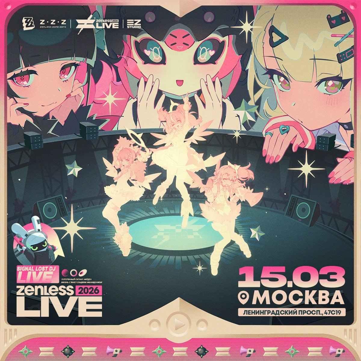В Москве состоится масштабное событие для фанатов ZZZ — концерт Zenless Signal Lost DJ Live. На ивенте которо с известными диджеями выступят виртуальные участники айдол-группы «Ангелы наваждения» из Zenless Zone Zero.