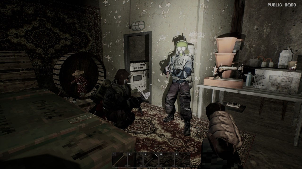 Осваивать Зону можно в команде до пяти игроков. В свободное от вылазок время вы можете выпить, пообщаться и продать торговцу найденный лут или редкие артефакты.