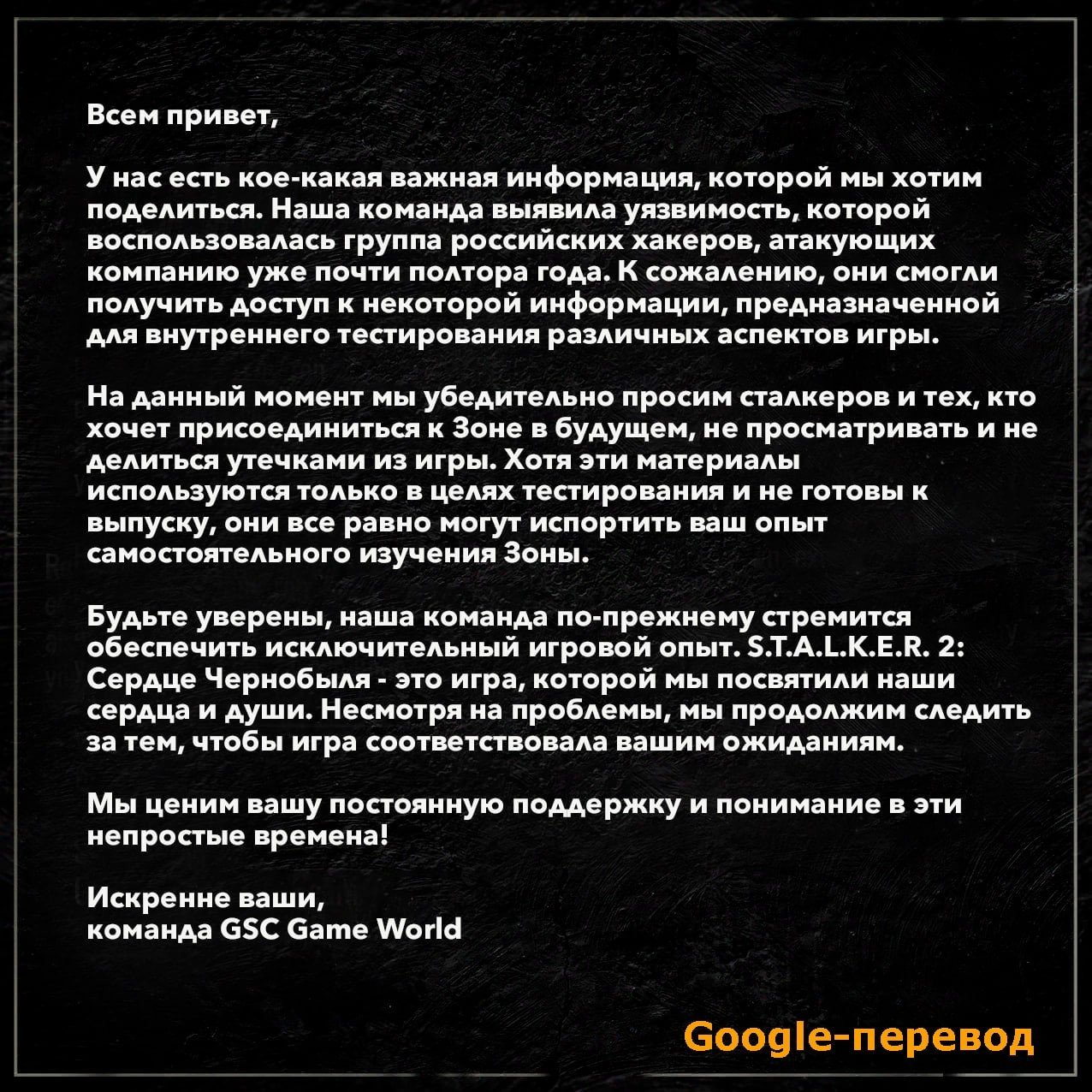 GSC Game World попросила не играть в слитый билд и не способствовать его распространению, так как это может повлиять на восприятие игры в будущем.