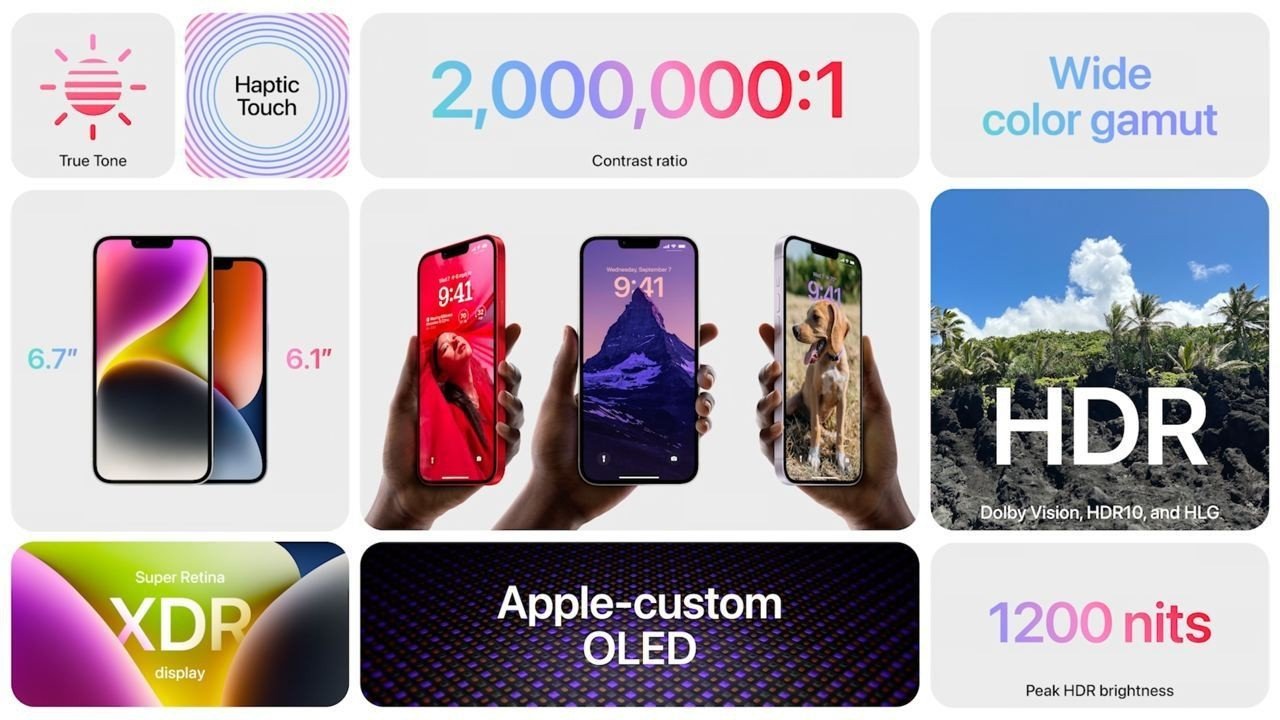 Базовая модель получила идентичные характеристики камеры и диагонали экрана. Не поменялся и дизайн. Отличие — в объеме оперативной памяти и емкости аккумулятора и процессоре. В iPhone 14 и 14 Plus установлен A15, как в iPhone 13 Pro.