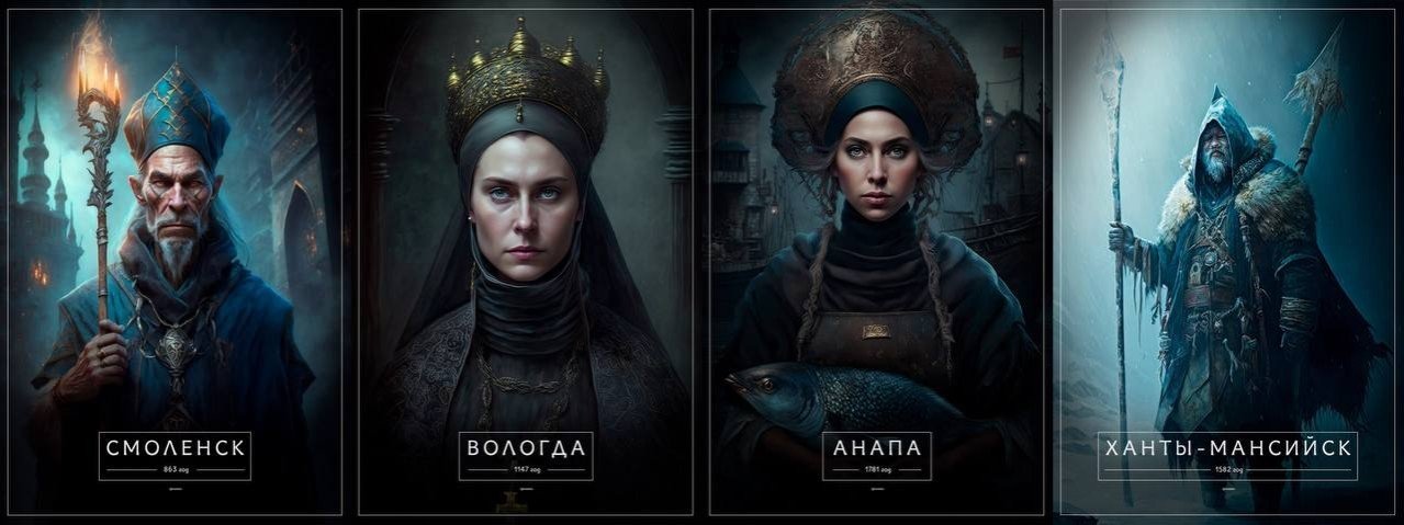 По словам Кирилла, идея возникла на пустом месте: он пробовал возможности нейросети в создании портретов игровых персонажей в стиле Dungeons & Dragons и на одном из портретов возникла четкая ассоциация с Россией.