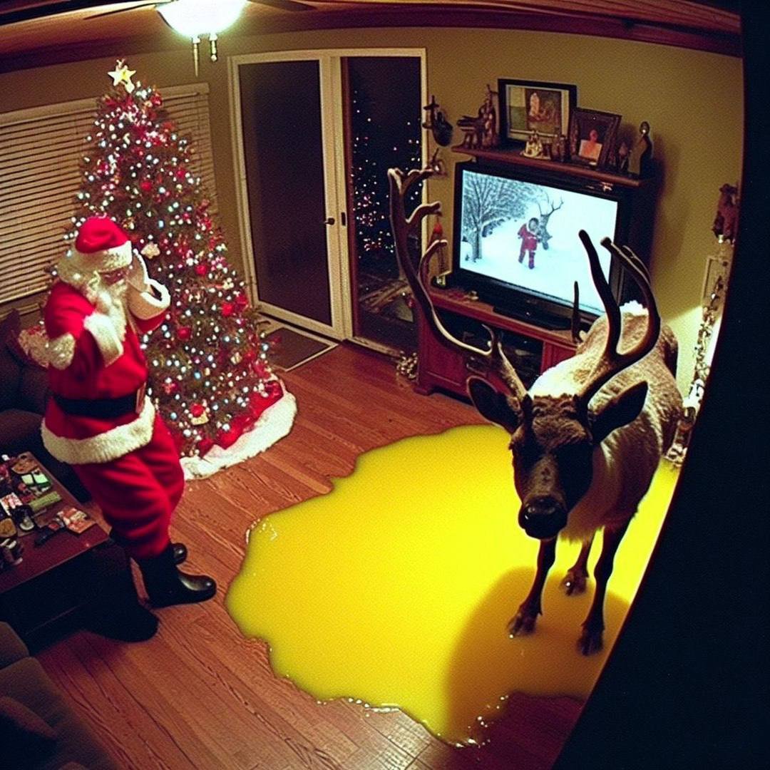 В следующей квартире у Санты произошел казус — его олень не сдержался и, мягко говоря, намочил пол хозяевам.