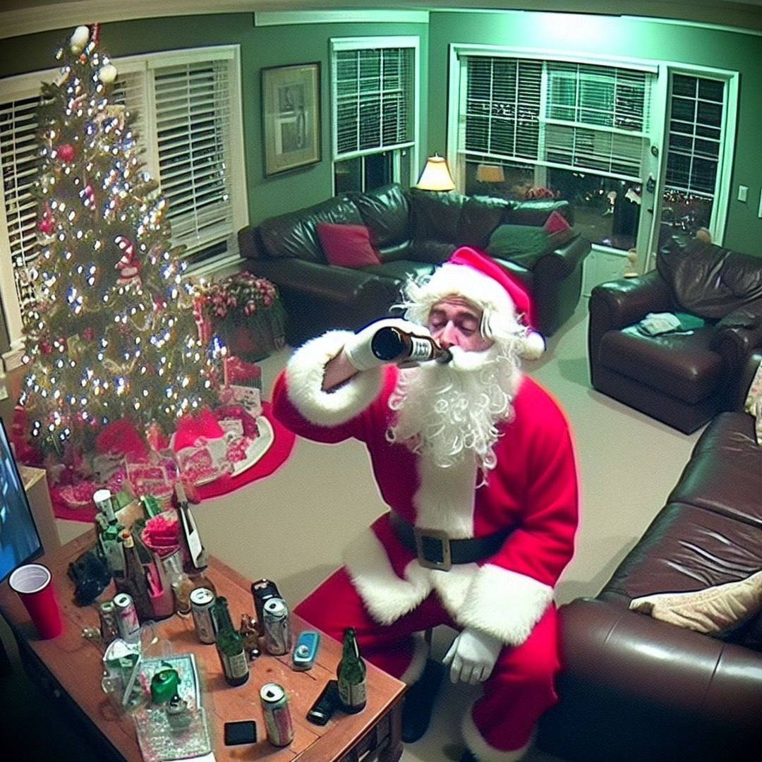 А здесь Клаус, кажется, сам не смог устоять перед соблазном. В доме было много алкоголя — дедушка решил продегустировать.