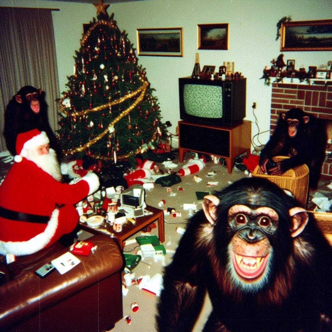 В другом пункте назначения Санту ждал сюрприз. На этот раз дом полон не кошек, а обезьян. Мартышки разодрали все подарки.