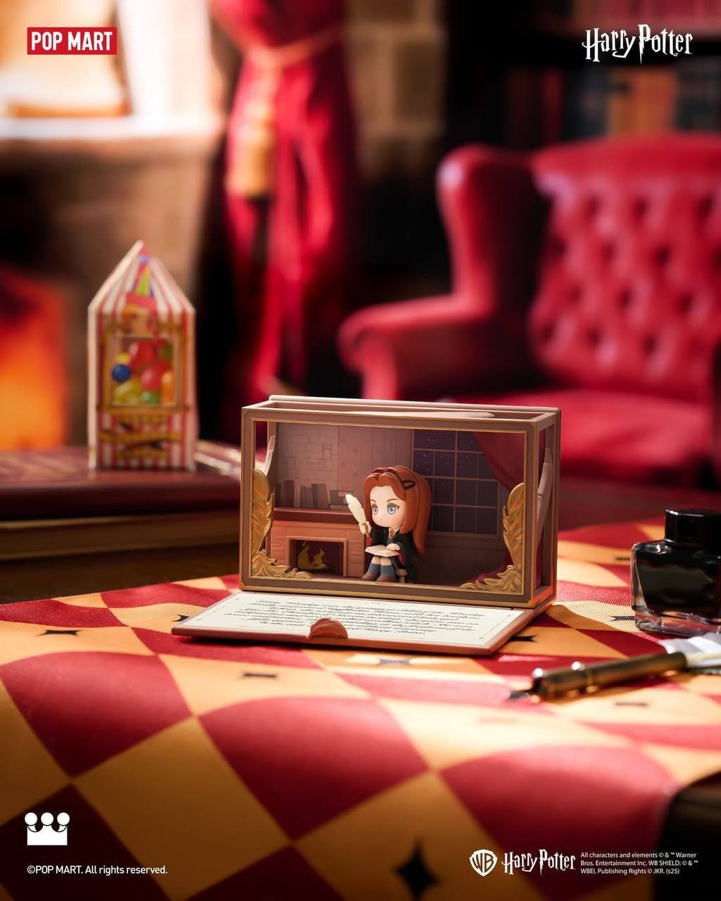 Каждая фигурка оформлена в узнаваемом стиле Pop Mart — с крупными головами, мягкими чертами и детально проработанными аксессуарами. В линейку вошли миниатюры Гарри, Гермионы, Рона, Дамблдора и других героев, выполненные в формате диорам, где фигурка стоит в мини-сцене с декорациями.