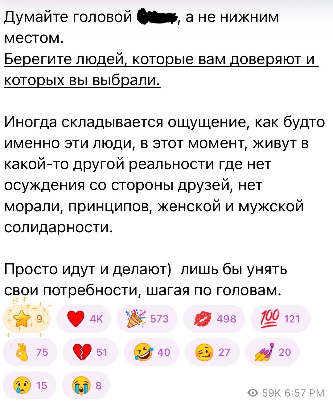 В сообщении Наташа осудила парня за измену, отметив, что не понимает медиек, которые имеют все, но продолжают совершать отвратительные поступки по отношению к своим вторым половинкам. Девушка призвала подписчиков и близких беречь тех, кто им доверяет: