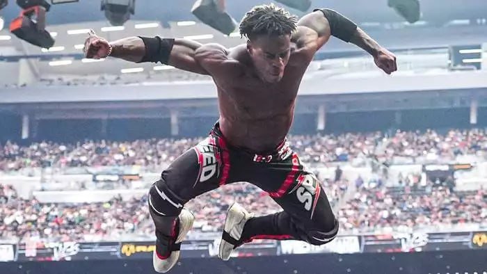 Сегодня у парня состоялся полноценный дебют на «WWE WrestleMania». Годом ранее он уже участвовал в королевской битве, а в этот раз принял полноценное участие в шоу.