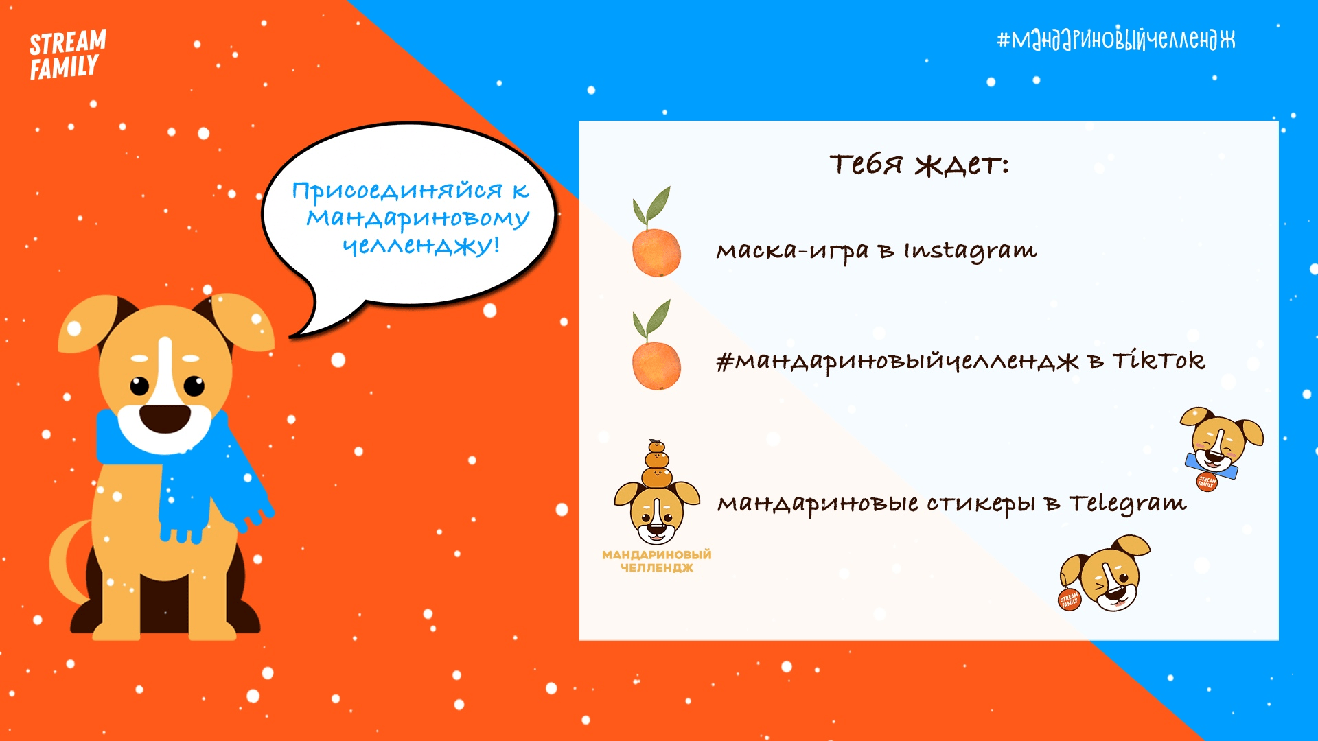 STREAM FAMILY: «Загружайте ваши ролики и ставьте хештег #мандариновыйчеллендж. Ролики самых креативных и умелых ловцов мандаринок мы покажем в нашем благотворительном стриме 19 декабря»