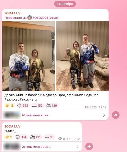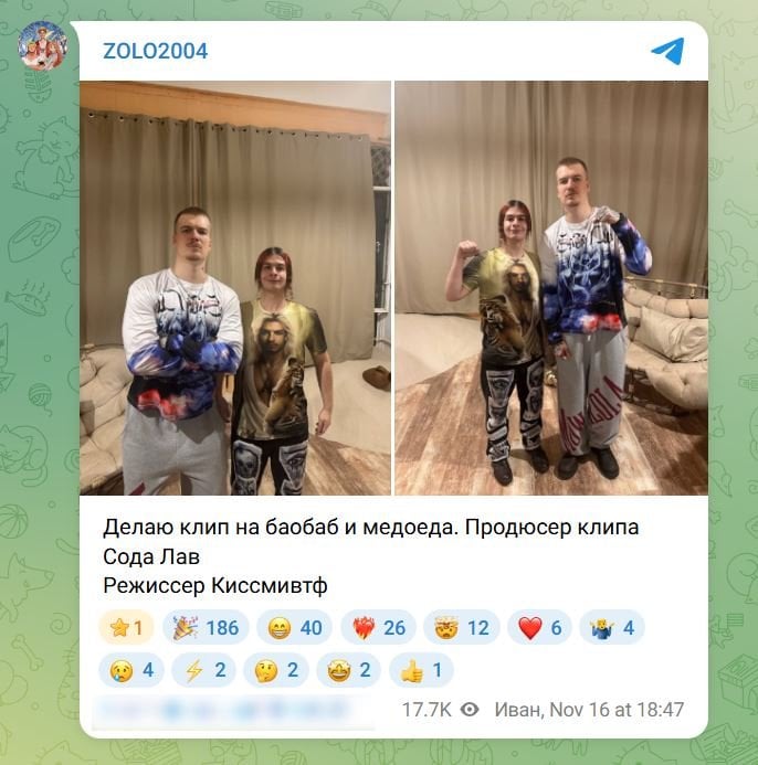 О неожиданной коллаборации стало известно вечером 16-го ноября. Парень выпустил короткий пост с подписью, где указал певца как продюсера клипов на песни «Баобаб» и «Медоед».