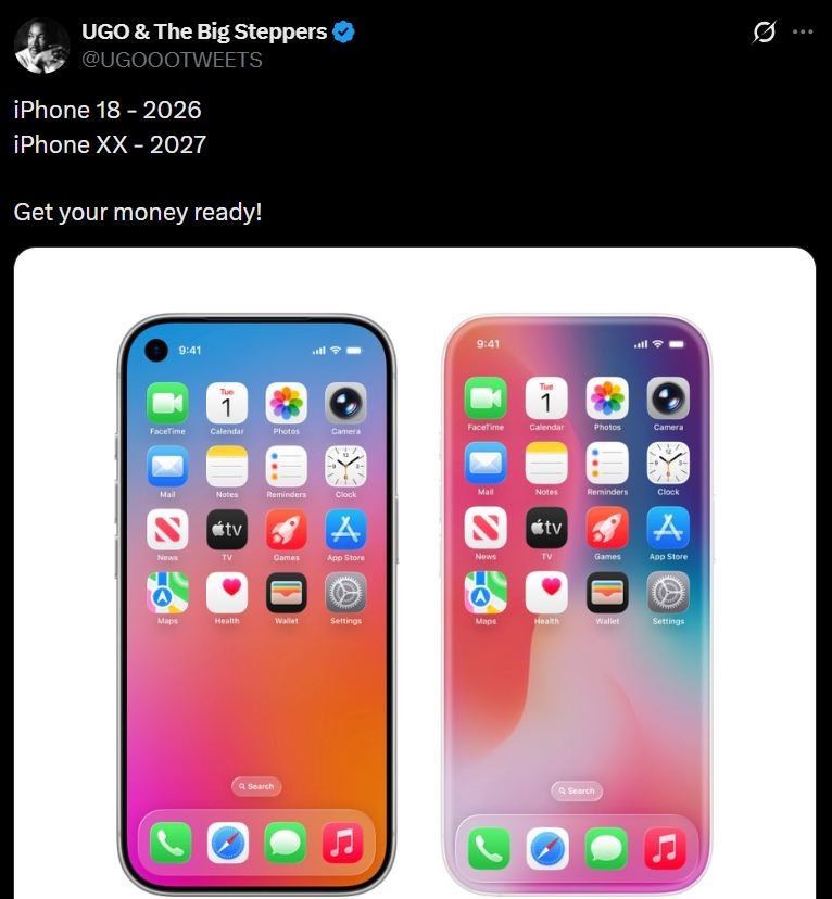 Недавно в сети появился пост от пользователя под ником @UGOOOTWEETS, который опубликовал в своем аккаунте сравнение двух еще не вышедших Айфонов — 18-го и 20-го. Примечательно, что от 19-й модели Apple решила отказаться, как и в случае с 9-й.