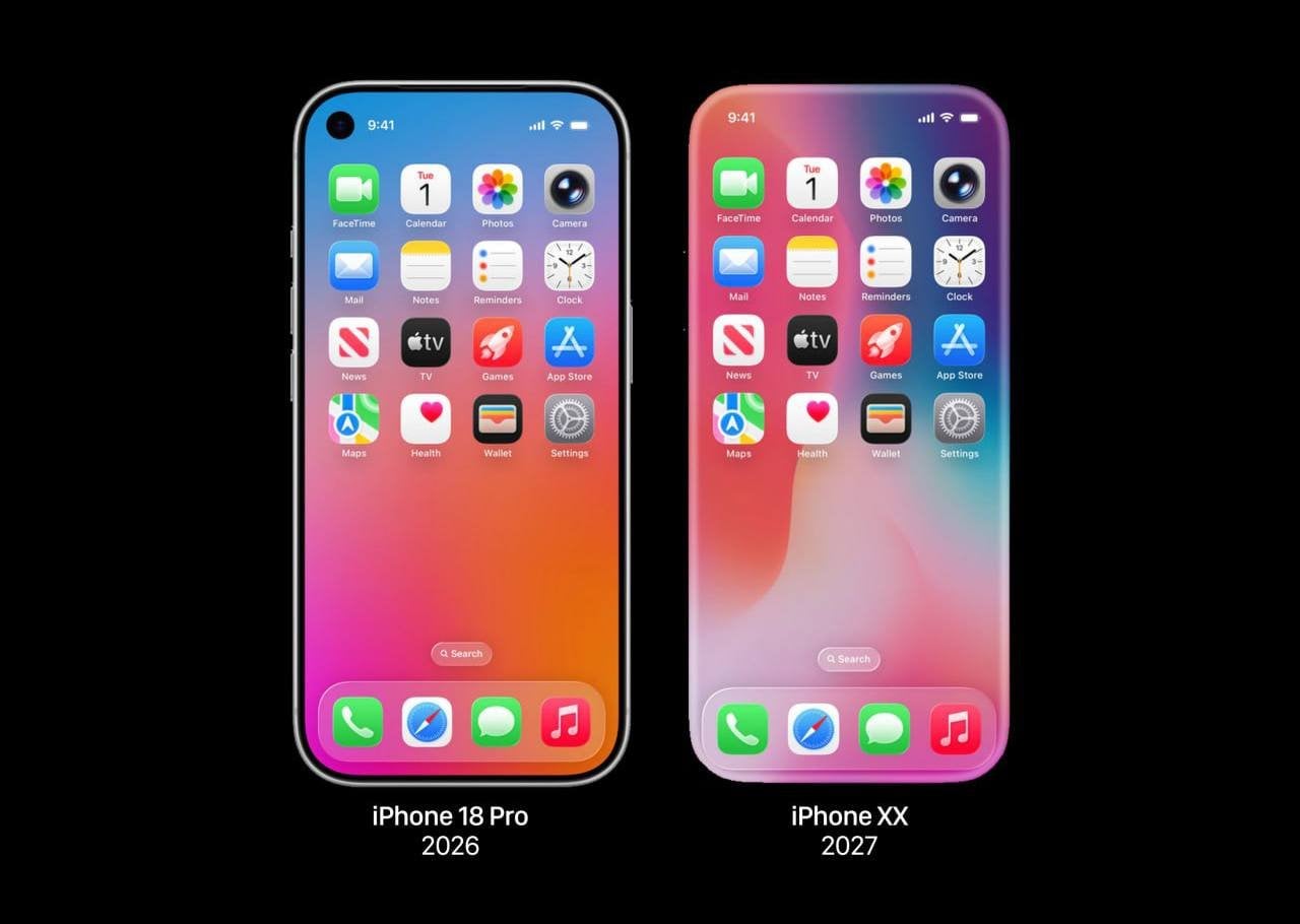По словам автора поста, iPhone XX выйдет в свет уже в 2027 году. Судя по изображению, Apple придет к полному избавлению от видимой камеры и сделает экран более изогнутым.