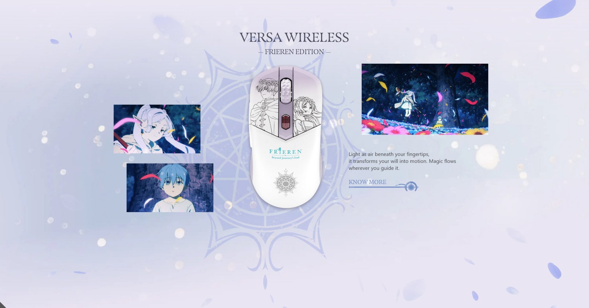 - VERSA WIRELESS FRIEREN EDITION — легкая игровая мышь (65 г) с сенсором PixArt PAW3395 и чувствительностью до 26 000 DPI