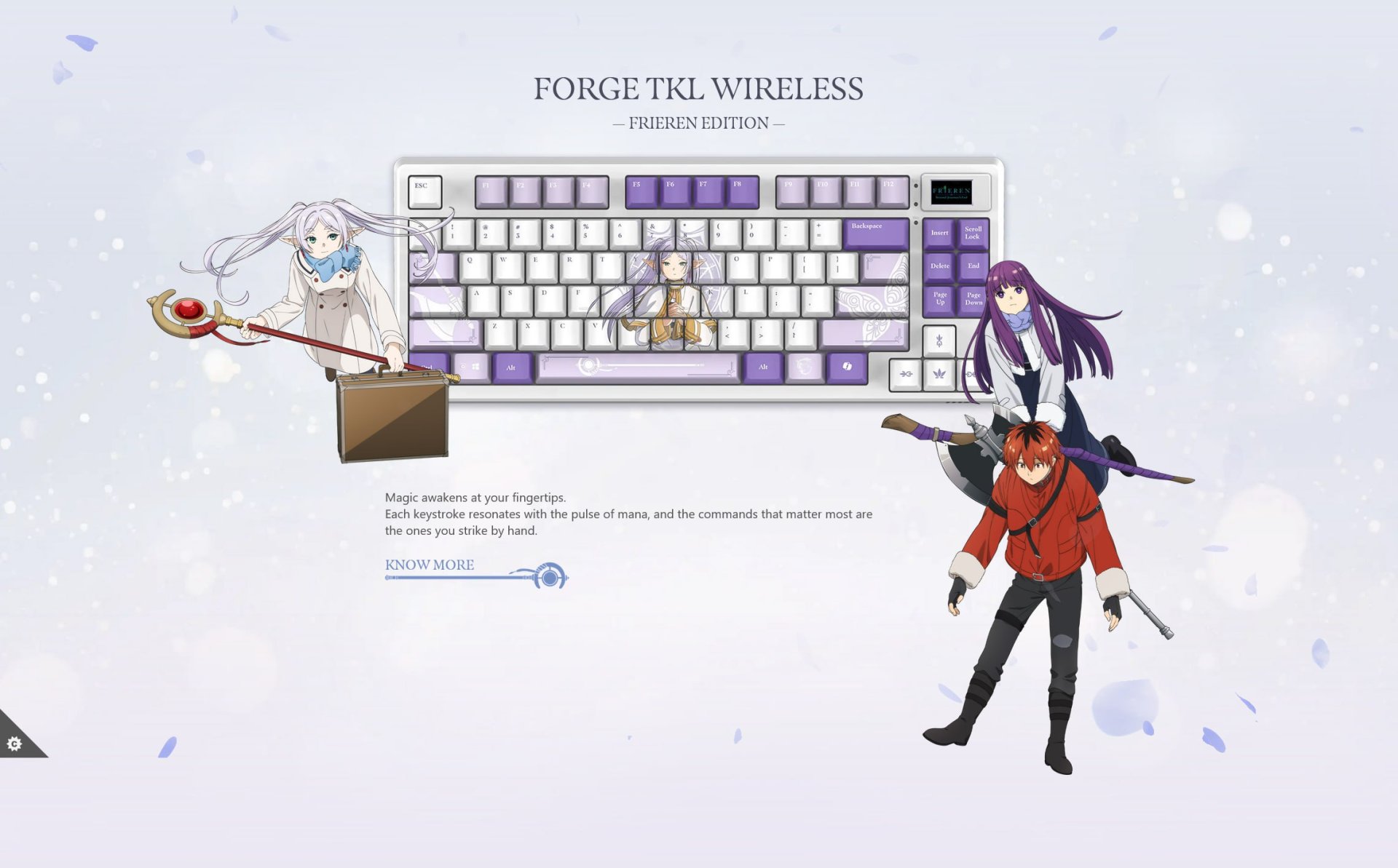 - FORGE GK600 TKL WIRELESS FRIEREN EDITION — компактная механическая клавиатура без цифрового блока с лавандовым дизайном и кейкапами с Фрирен, Ферн и Штарком
